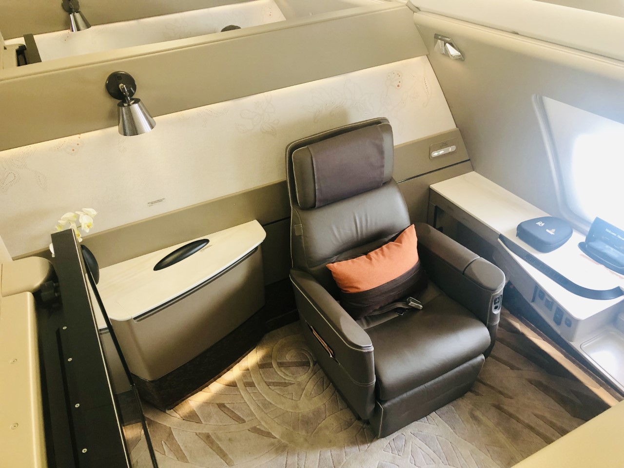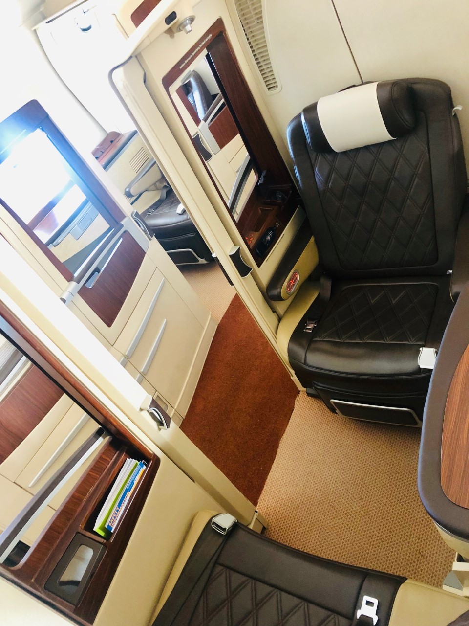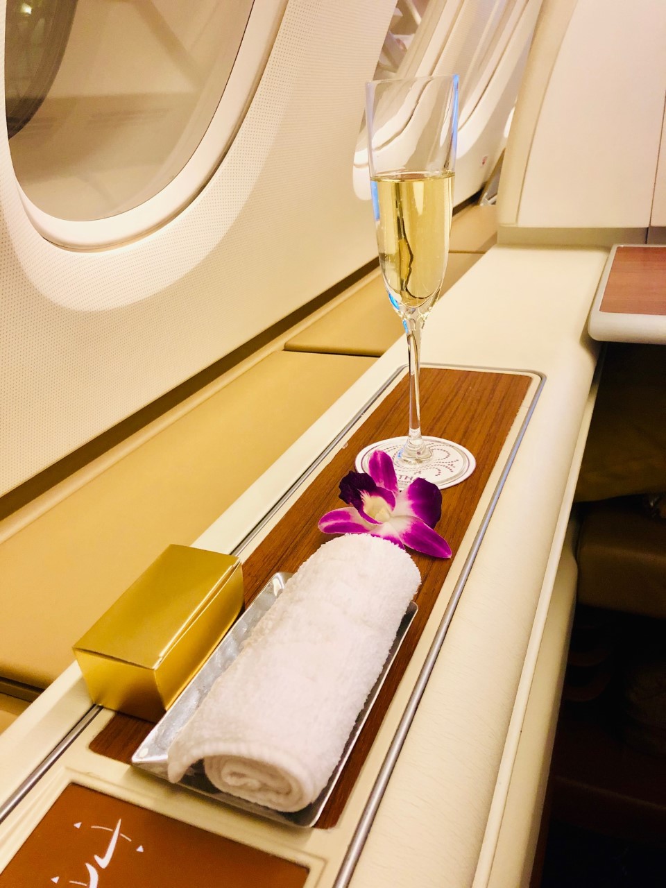 Dazwischen geniesst du ein feines Essen oder einen Drink in der First Class Lounge wie auch die vielen erstklassigen Vorzüge in der First Class Kabine.